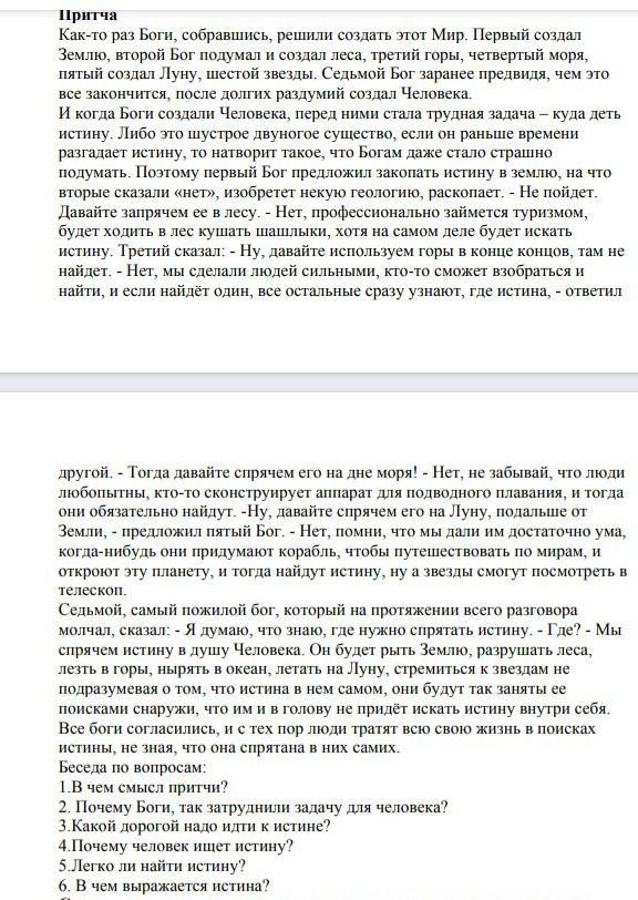 1) В чём смысл притчи? - Смысл притчи состоит в том, чтобы научить человека искать истину в себе самом.