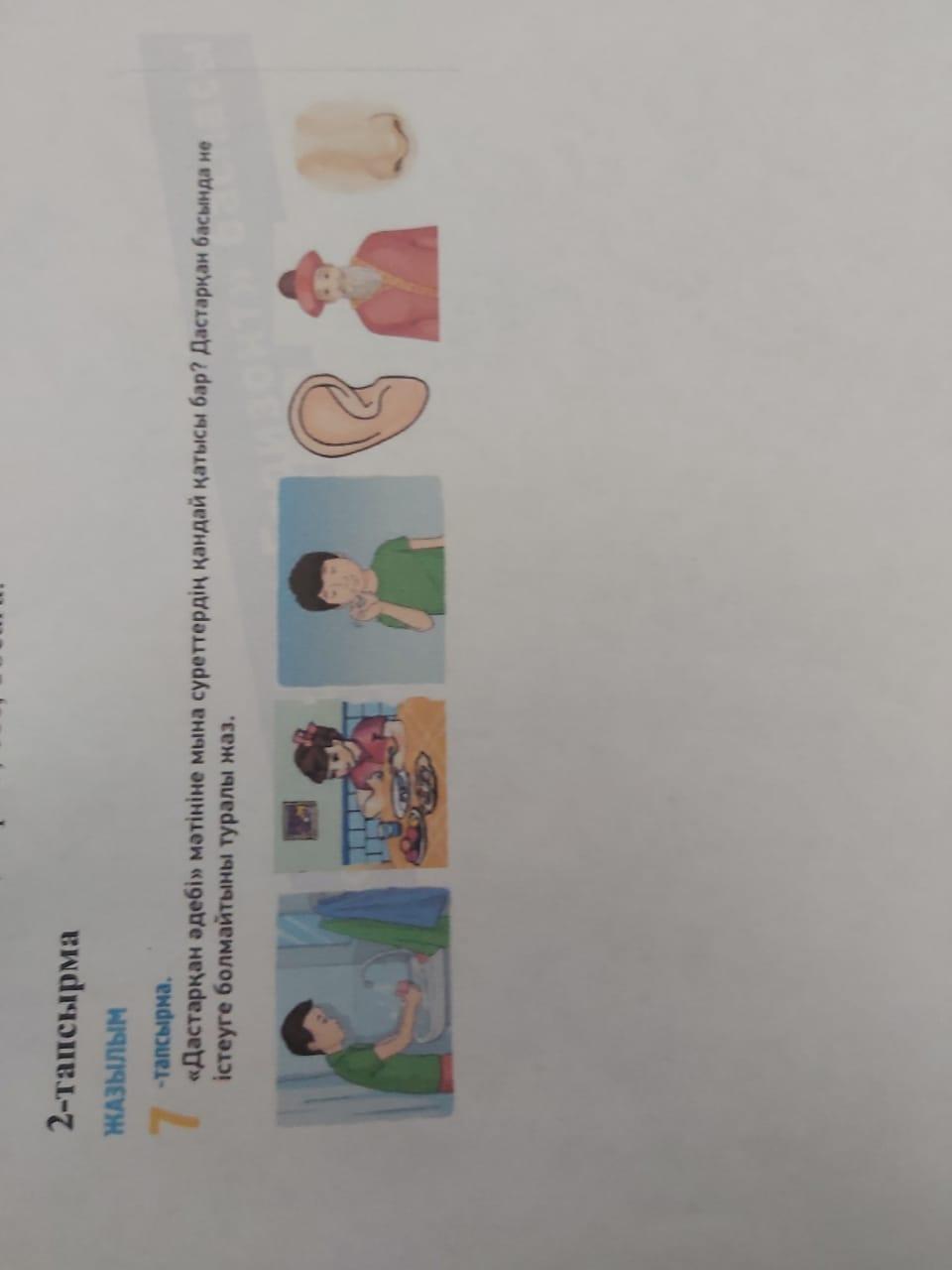 Дастарқан басына отырмас бұрын қолды жақсылап жуу керек. Жәнеде әдеп сақтап тамақтану керек. Ең бірінші асты үлкен кісі бастау керек. Үлкен кісі бастаса ғана тамақтана беруге болады. Тамақ ішіп болғаннан кейін қолды қайттан жуу қажет. Тісті де ұмытпаймыз!