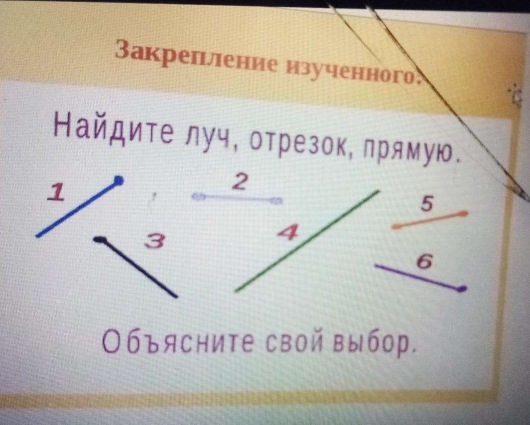 Луч - 1, 3, 6 (луч имеет начало, но не имеет конца)