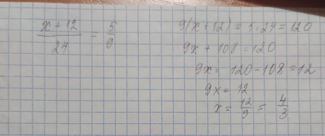 Найди x в пропорции x + 12/24 5/9