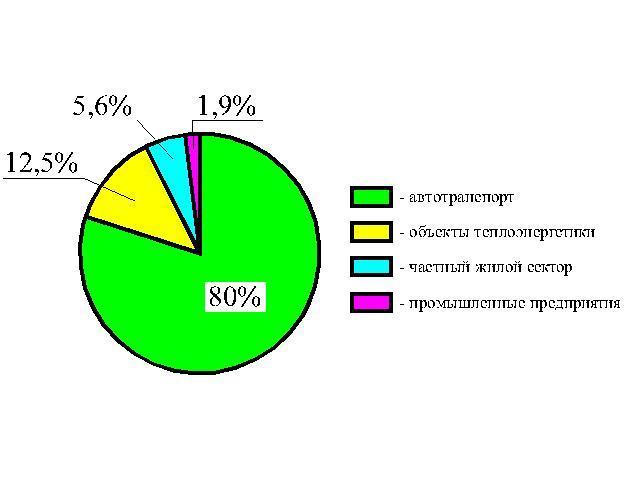 начертить круговую диаграмму автотранспорт 80% объекты теплоэнергетики 12,5 частный жилой сектор 5,6 промышленные предприятия 1,9