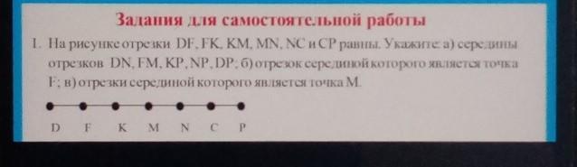 На рисунке отрезки DF, FK, KM, MN, NC и CP равны. Укажите: а) середины