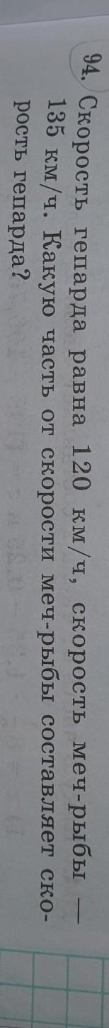 94. Скорость гепарда равна 120 км/ч, скорость меч-рыбы