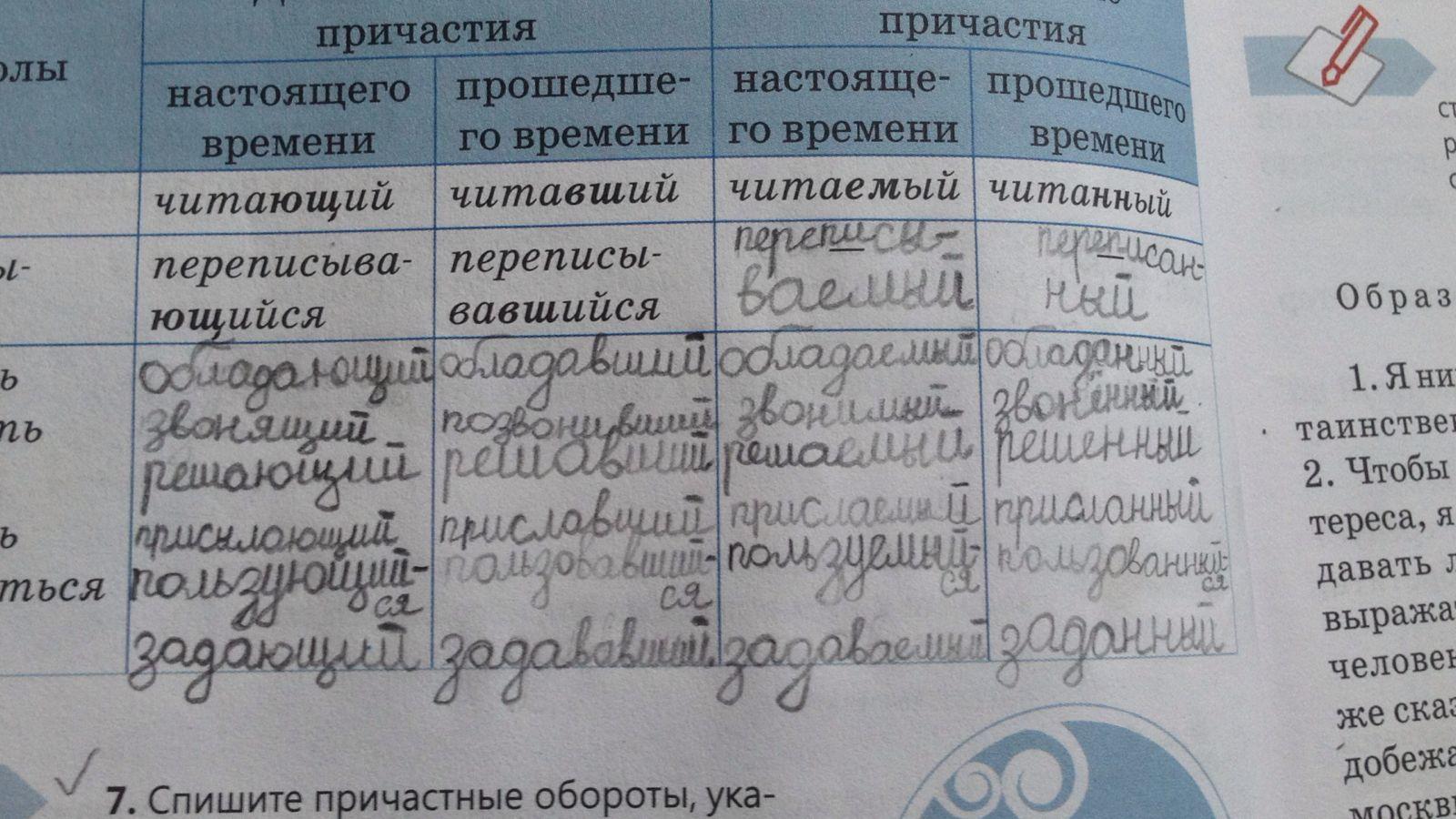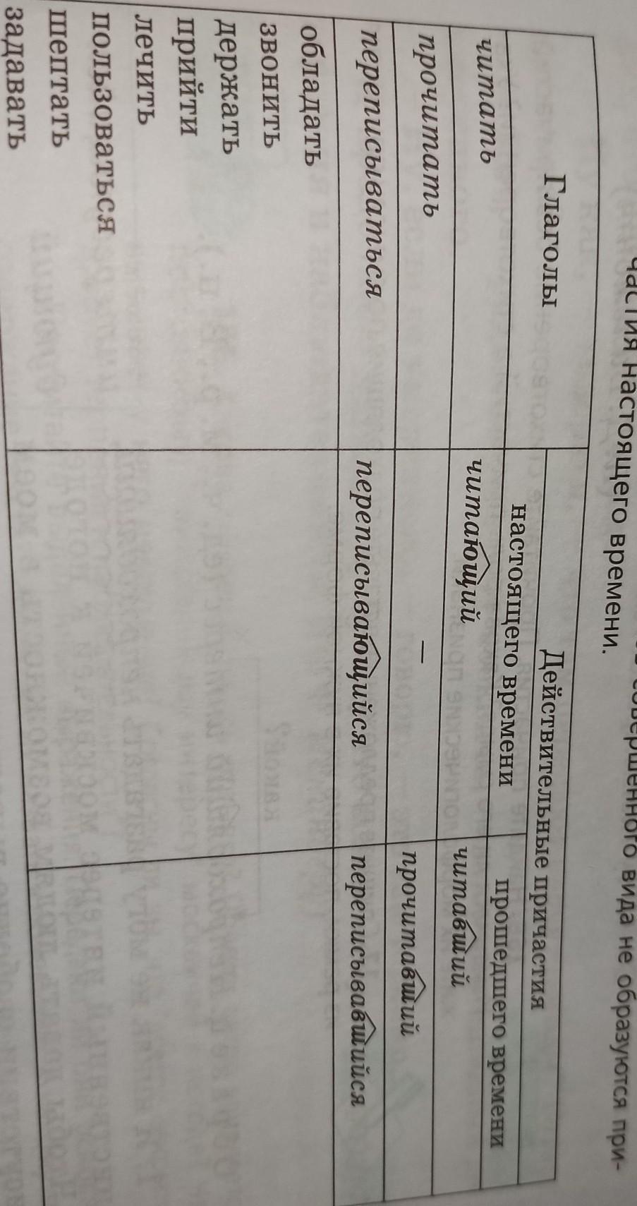 образуйте от данных глаголов действительные причастия, заполните таблицу в тетради. Помните, что от глаголов совершенного вида не образуются причастия настоящего времени.
