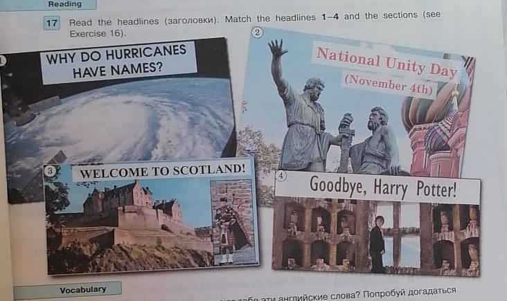Read the headlines (Заголовки). Match the headlines 1-4 and the sections (see