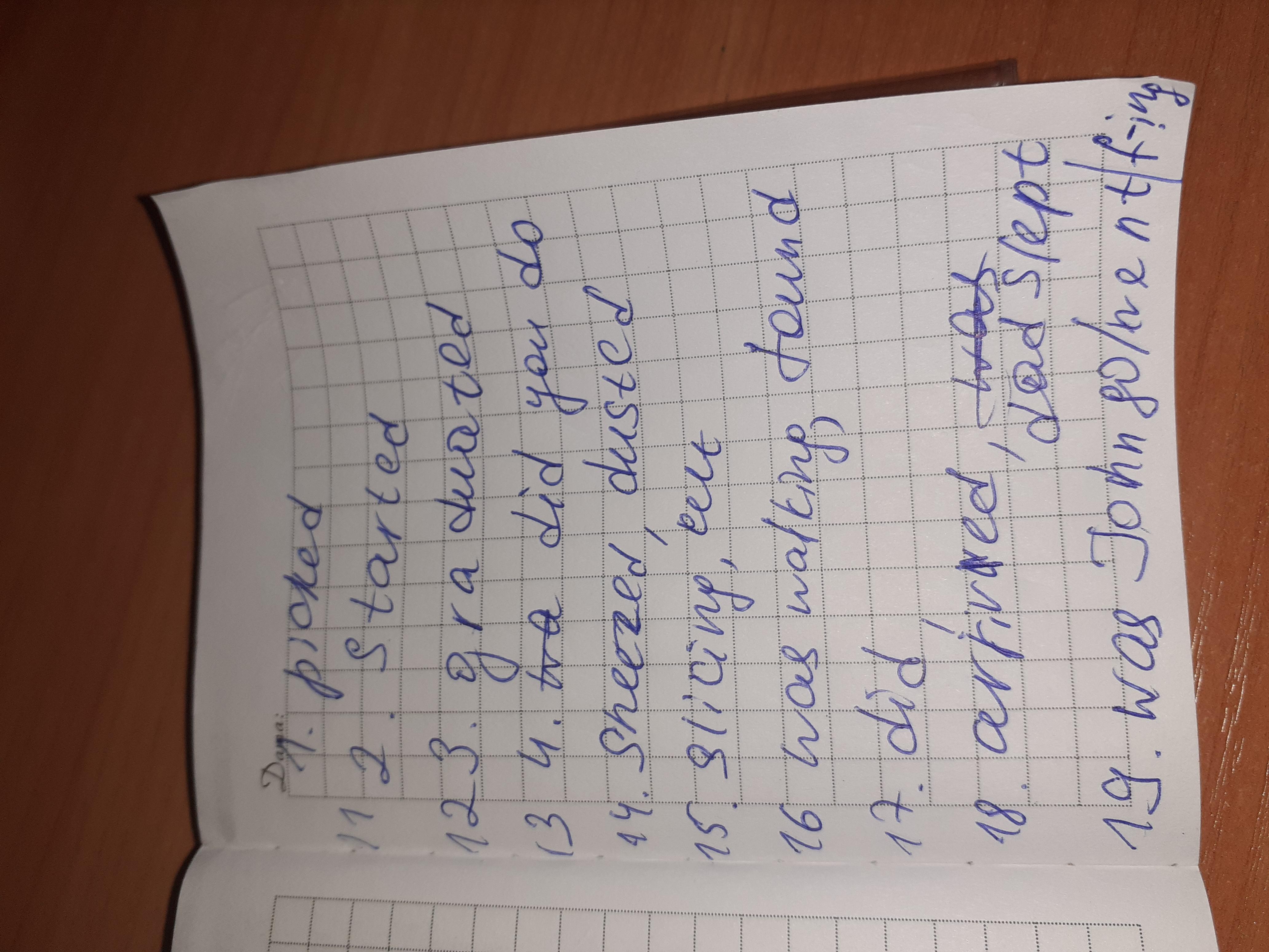 13) What did/ were you do yesterday? 14) The housemaid sneezed/ were sneeze while she dusted/ was dusting the furniture. 15) The cook sliced/ was slicing the tomatoes when he cut/ cuts his finger. 16) The man was walking/ had walked for almost an hour before he finally finds/ found the cafe. 17) Did/ Were the couple break up after the last big fight? 18) By the time my parents arrived/ was arriving home , I had/ was already slept.