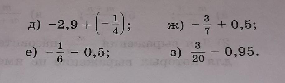 з) 3/20 - 0,95 = 0,15 - 0,95 = (-0,8)