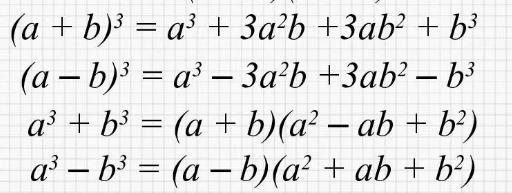 Все примеры, которые даны в задании решаются, с помощью формул сокращенного умножения кубической степени (см.вложение)