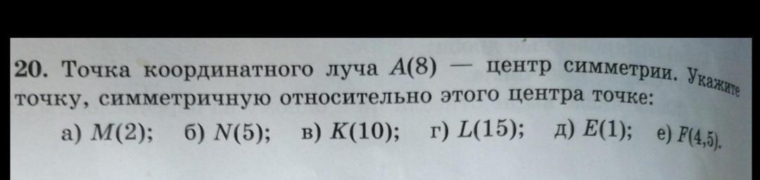 Точка координатного луча А(8) - центр симметрии. Указать точку, симметричную относительно этого центра точке: