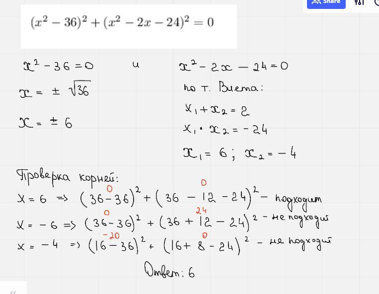 Получилось три корня, необходимо сделать обязательно проверку. После проверки видим, что подходит только 6.