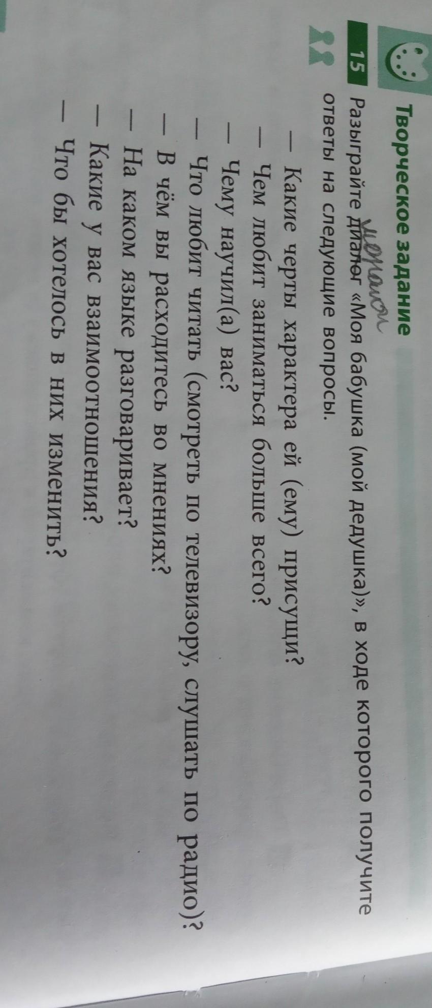 Моей бабушке достались черты характера от её мамы. Она любит смотреть телевизор,читать телевизор. Еще она любит внуков и внучат. Меня бабушка научила в деревне как доить корову. Она любит смотреть по телевизору новости. Мы с бабушкой иногда расходимся по мнению и спорим но выигрывает дружба :) Она разговаривает на русском языке. У нас хорошие взаимоотношения. Мне хорошо и так. Я ее очень люблю. И еще мы очень любим гулять по парку и кушать мороженое