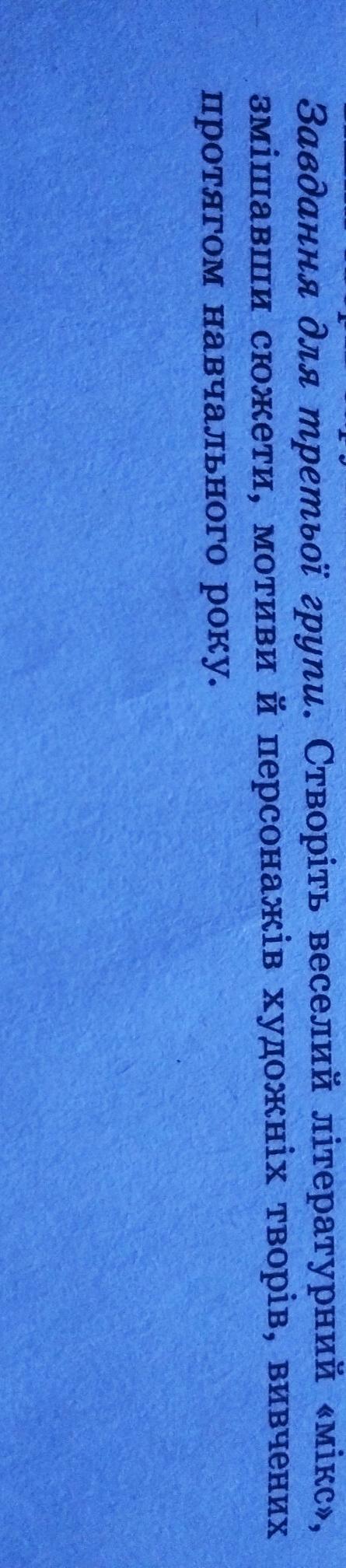 Створить веселий літературний "мікс", змішавши сюжети,мотиви й персонажів художніх творів ,вивчених протягом навчального року.