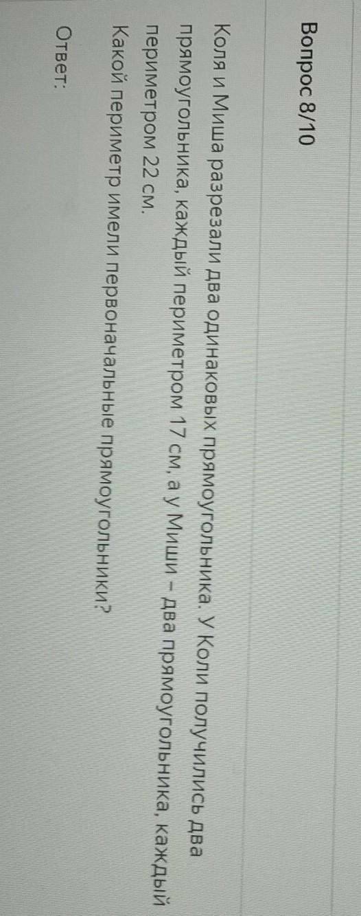 прямоугольника, каждый периметром 17 см, а у Миши – два прямоугольника, каждый