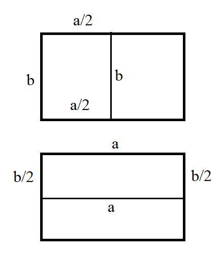 Пусть Коля разрезал сторону а пополам, а Миша сторону b ( cм. рис.)