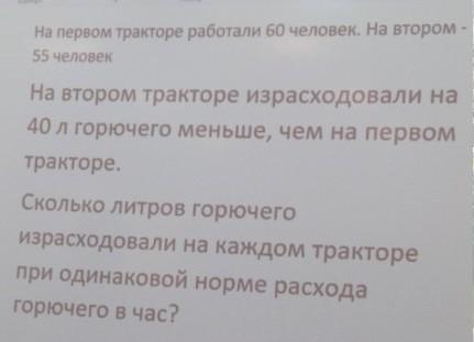 x1 - x2 = 40 (л) -первый трактор израсходовал на 40 литров больше