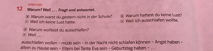 → Weil (meine) Eltern bei Tante Eva waren.