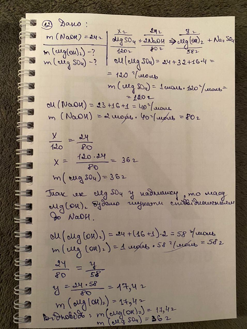 12. Обчисліть масу магній гідроксиду, який утворився внаслідок вза-