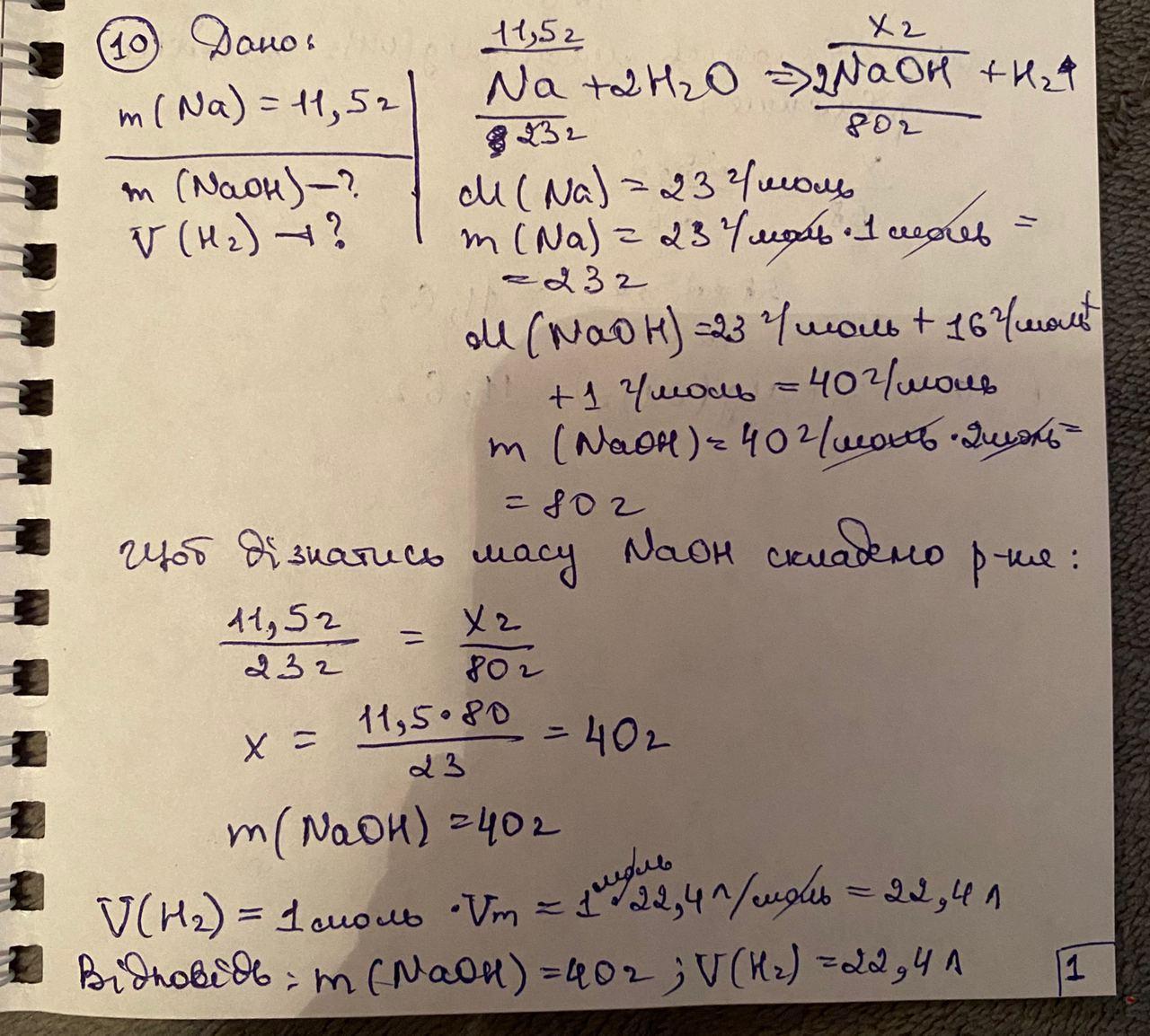 В 10 завданні помилка, не урівняний натрій зліва, від цього зміниться маса натрій гідроксид, стане 20 г