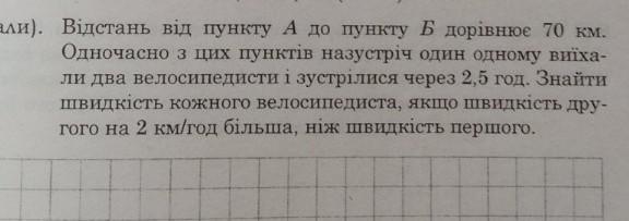 70:2,5=28 км\ч скорость сближения велосипедистов