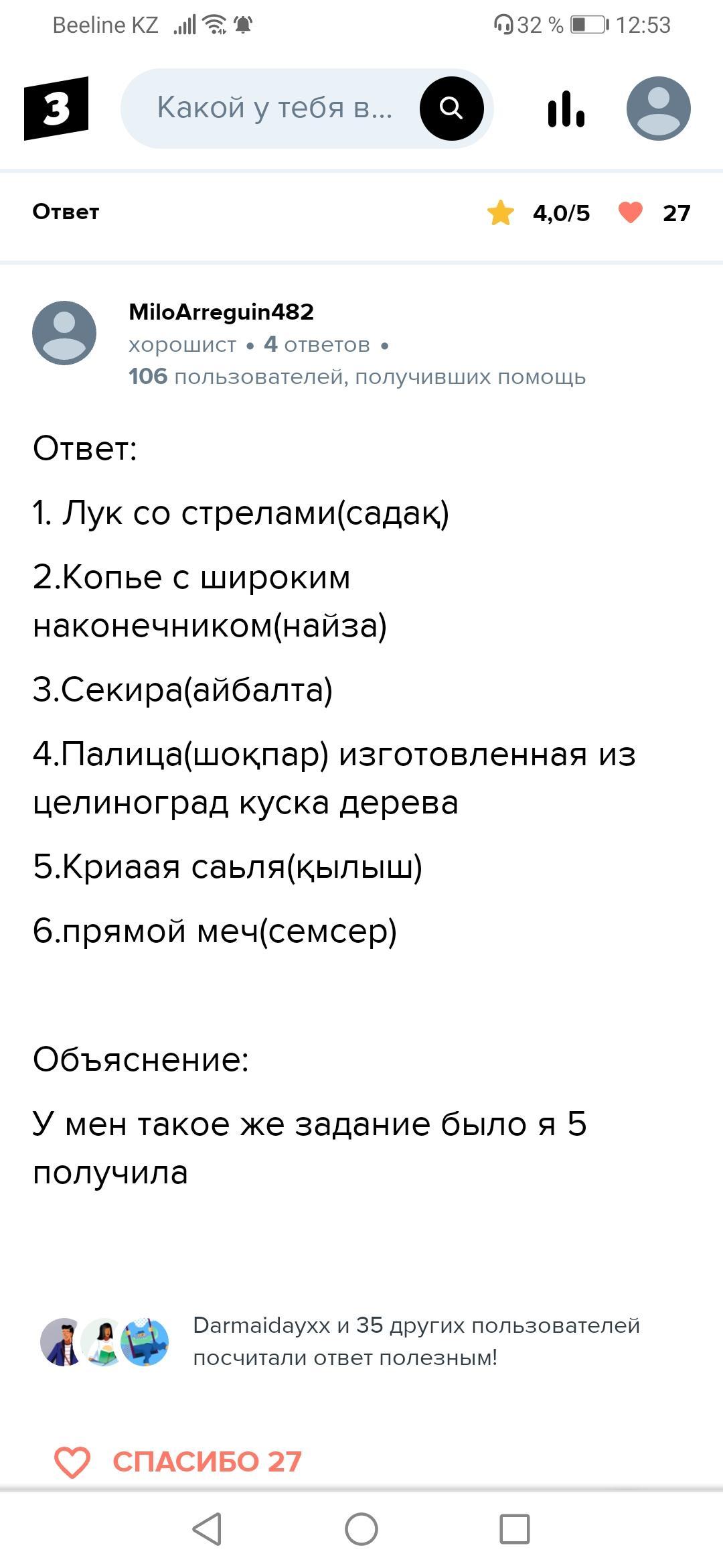 У казахских батыров существовал культ боевого оружия. Определите вооружение казахских воинов и дайте ему краткую характеристику. Нужна помощь