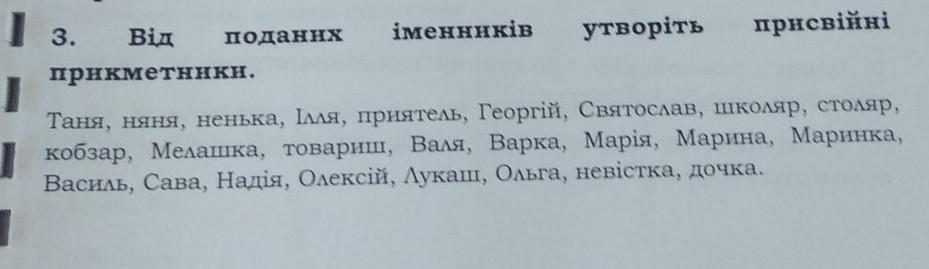 Танін , нянін, ненькін , Ілл‘їн, приятелеве, Геогрію, Святославін, школярін, столярін,кобзар‘єв,Мелашкін, товаришева, Валін, Варкін, Маріїн, Маринін, Маринкін, Васил‘єва, Сав‘їн, Надіїн,Олексіїн,Лукашин, Ольжин, невістчин, доччин