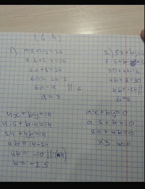 найдите а, в если пара чисел является системой уравнений а х + 2 у =26 4х + ву =14 6 а + 8 =26 24 - 46 =14