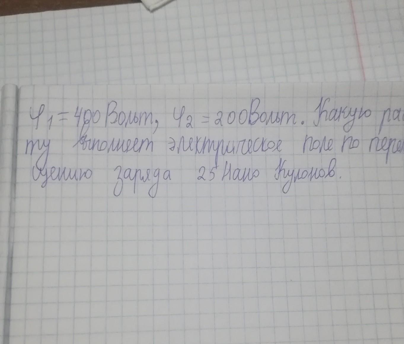 Помогите!!! Какую работу выполняет электрическое поле по перемещению заряда, ответ 5*10^-6Кл только как это решить