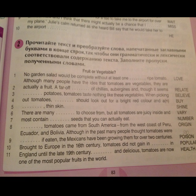 Помогите, пожалуйста! Нужно преобразовать слова, напечатанные заглавными буквами в конце строк, так чтобы они грамматически и лексически соответствовали содержанию текста.