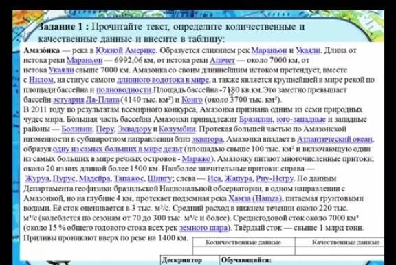 прочитай текст отредили количественные и качественные данные и внесите в таблицу