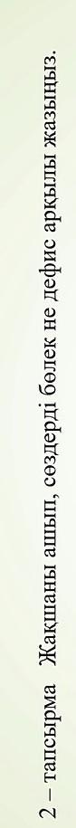 2 - тапсырма Жақшаны ашып , сөздерді бөлек не дефис арқылы жазыңыз .