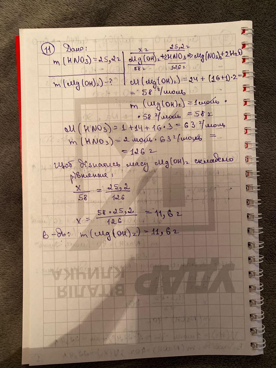 Обчисліть масу магній гідроксиду яку треба витратити щоб нейтралізувати нітратну кислоту масою 25,2 г