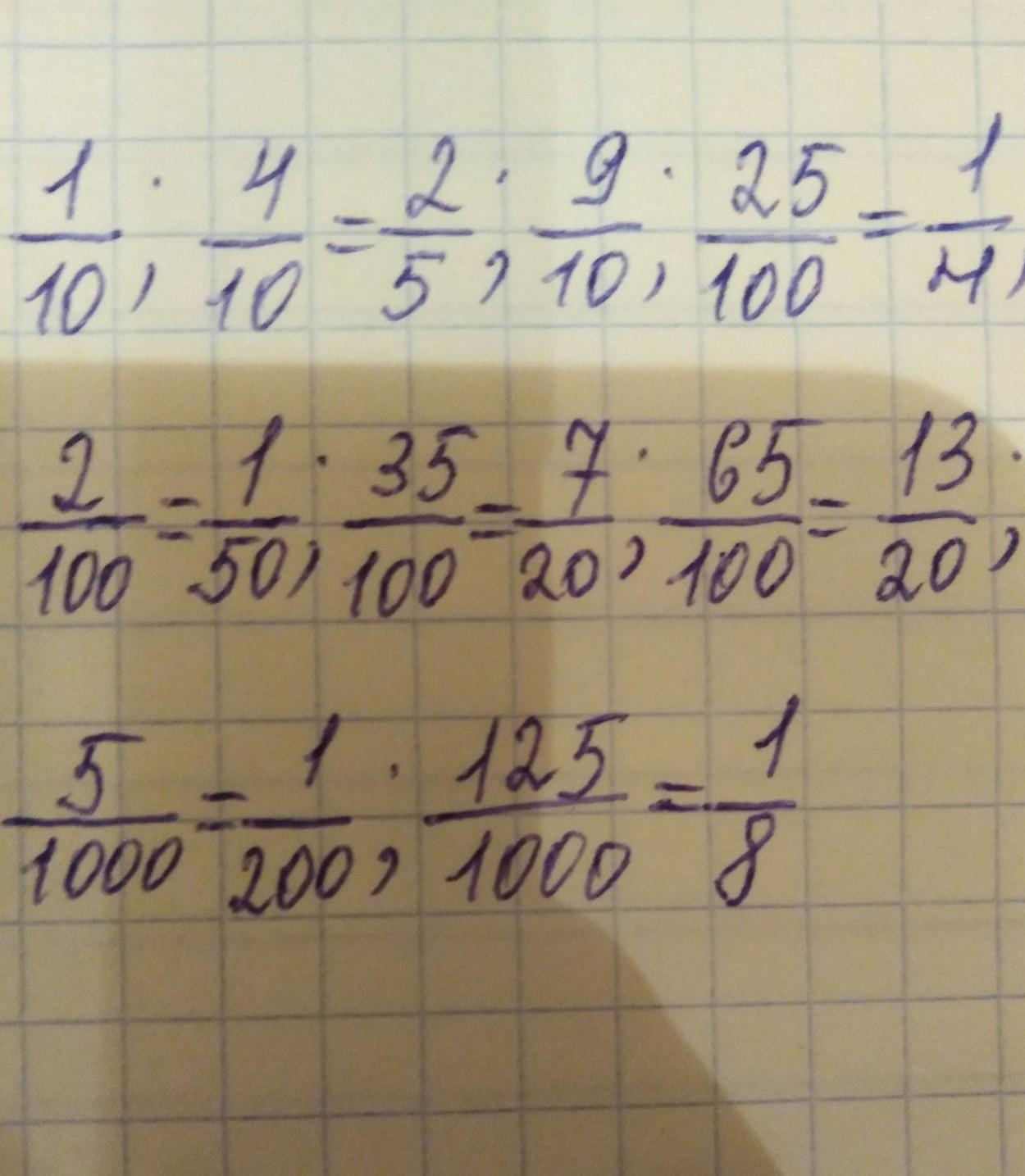 Запиши десятичные дроби в виде обыкновенных. Сократи, если