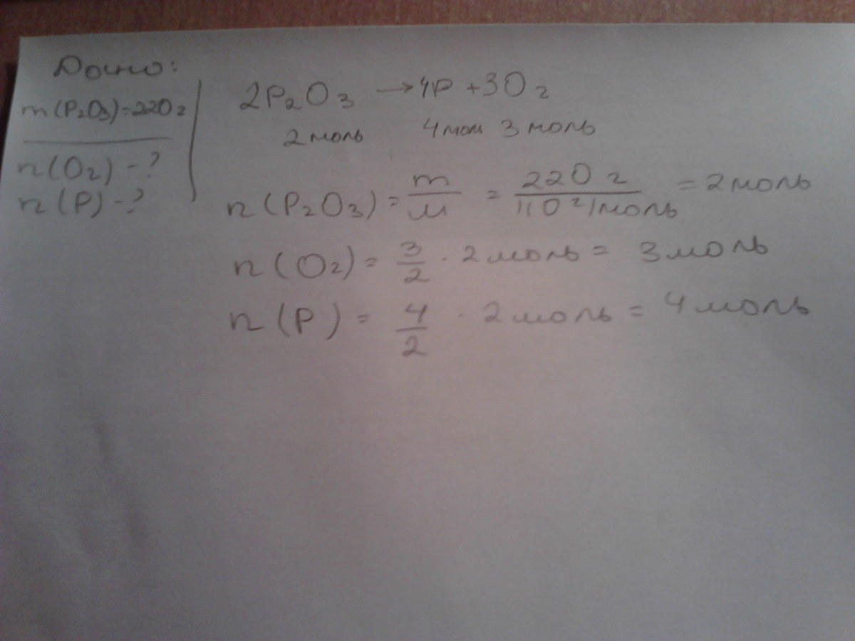 найдите количество вещества атомов кислорода и атомов фосфора, которое содержится в оксиде фосфора 3 массой 220 г