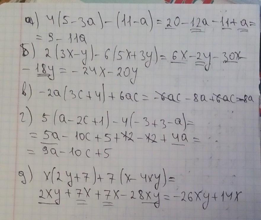 7г) 5 (a-2с+1)-4 (-3 +3 -a)