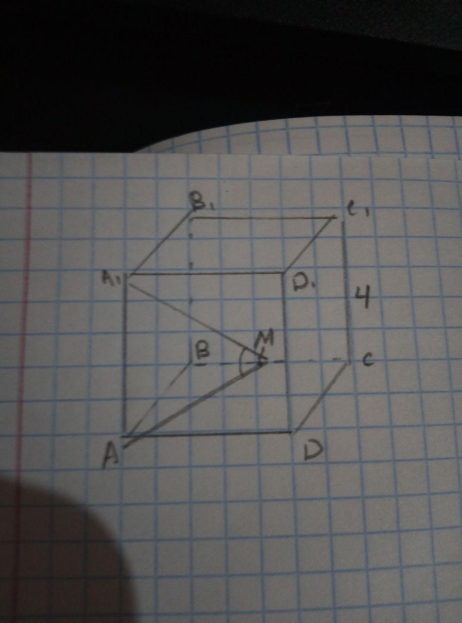 АА1 _L ABC по свойству правильной призмы. Тогда <АА1М=90° и ∆АА1М - прямоугольный. В ∆АВС АМ - медиана, раз он равносторонний - то и высота, откуда ВМ=0.5*ВС=√3, <АMВ=90°. ∆АВМ прямоугольный, AB²=BM²+AM³, откуда АМ=3. ∆А1АМ прямоугольный, A1M²=MA²+AA1², A1M²=3²+4², A1M=5.