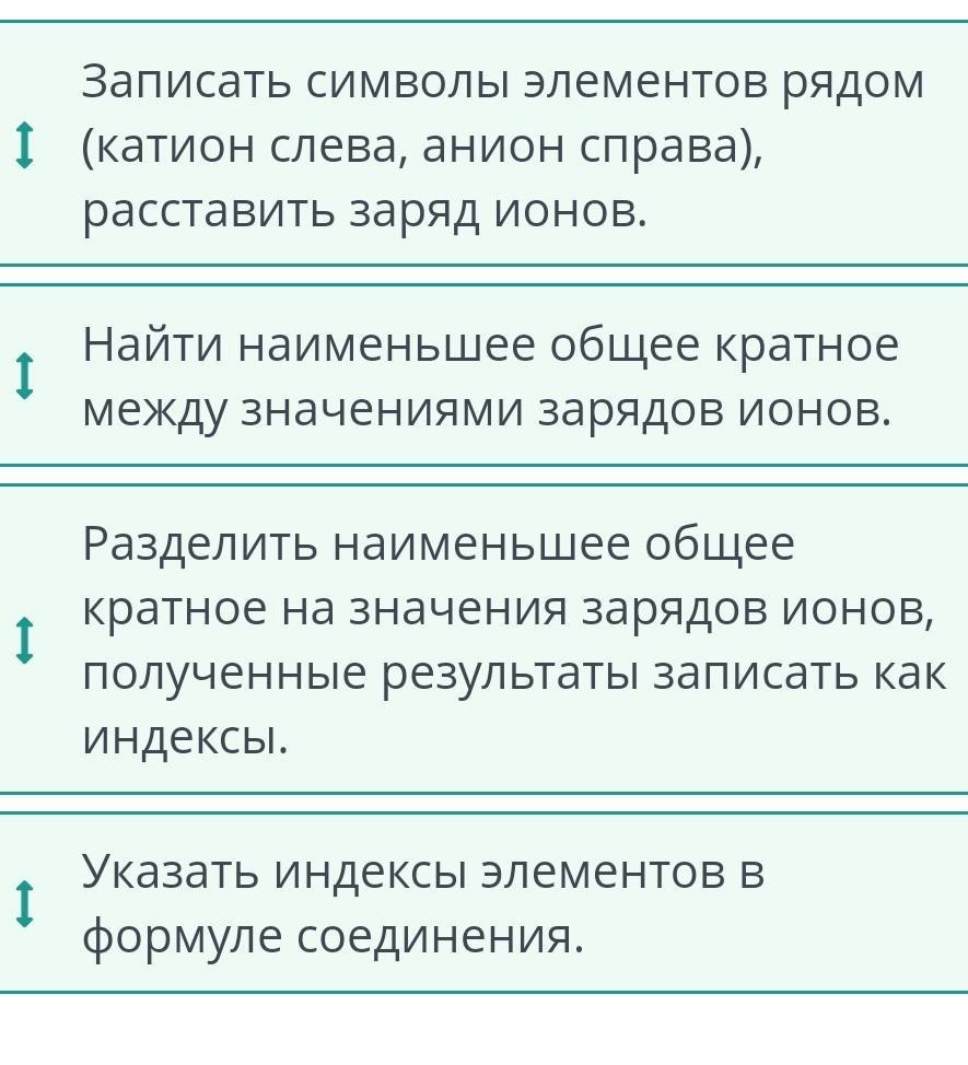 1Записать символы элементов рядом (катион слева, анион справа), расставить заряд ионов.