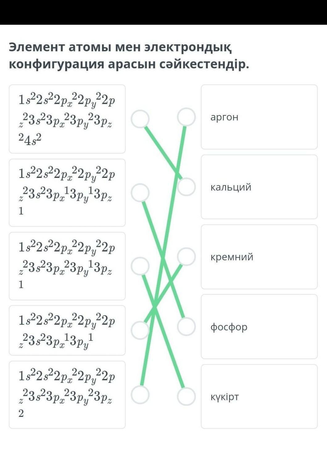 Элемент атомы мен электрондық конфигурация арасын сәйкестендір.
