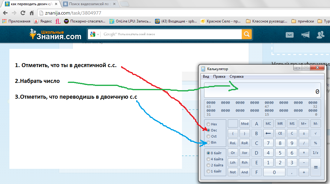 Ой, только я написала наоборот - из десятичной в двоичную. Поэтому пункты 1 и 3 надо поменять местами