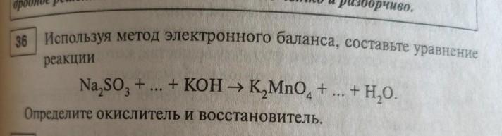 2 KMnO4 + Na2SO3 + 2 KOH → 2 K2MnO4 + Na2SO4 + H2O