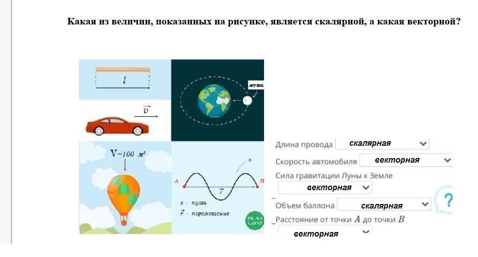 Какая из величин, показанных на рисунке, является скалярной, а какая векторной? пж