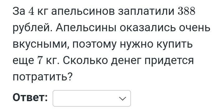 1) 388 : 4 = 97 (руб) стоит один кг апельсинов