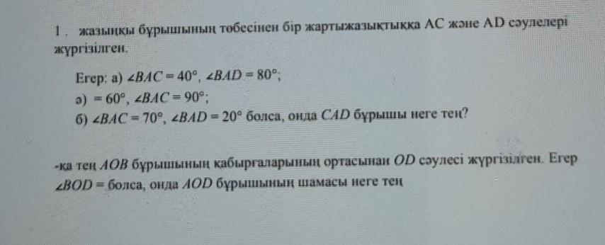 6) <BAC = 70°, 2BAD = 20° болса, онда CAD бұрышы неге тең?