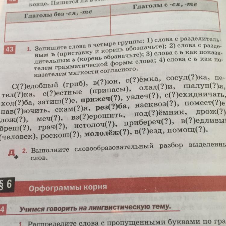 1. Запишите слова в четыре группы: 1) слова с разделитель-
