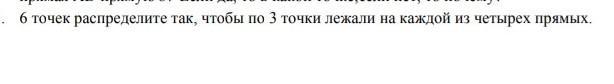 распределиие 6 точек так что бы по 3 точки лежали на каждой из четырёх прямых, пожалуйста