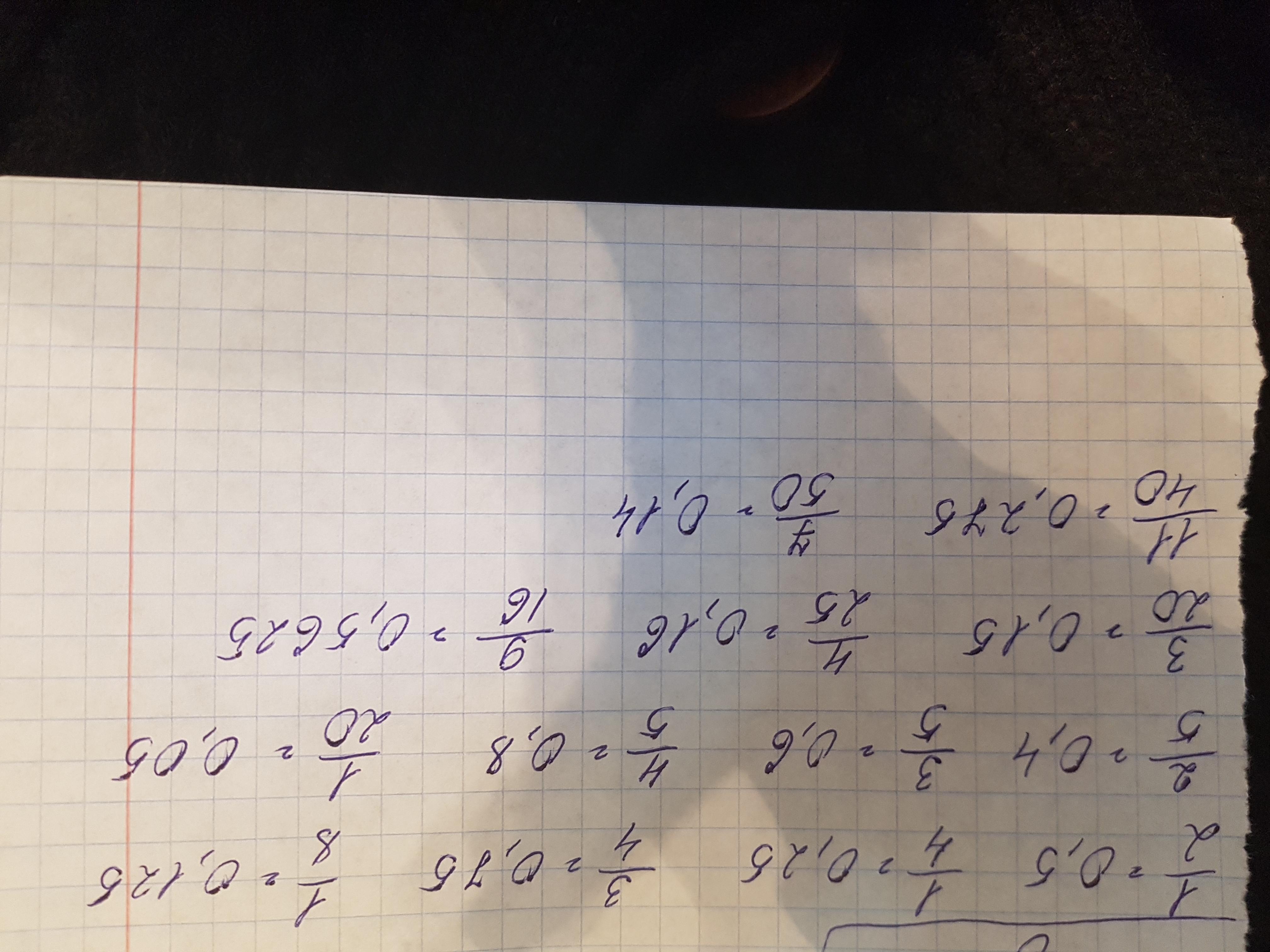 Запиши в виде десятичных дробей данные обыкновенной дроби 1/2 1/4 3/4 1/8 3 85878 2/5 3/5 4/5 1/20 3/20 4/25 9/16 11/40 7/50