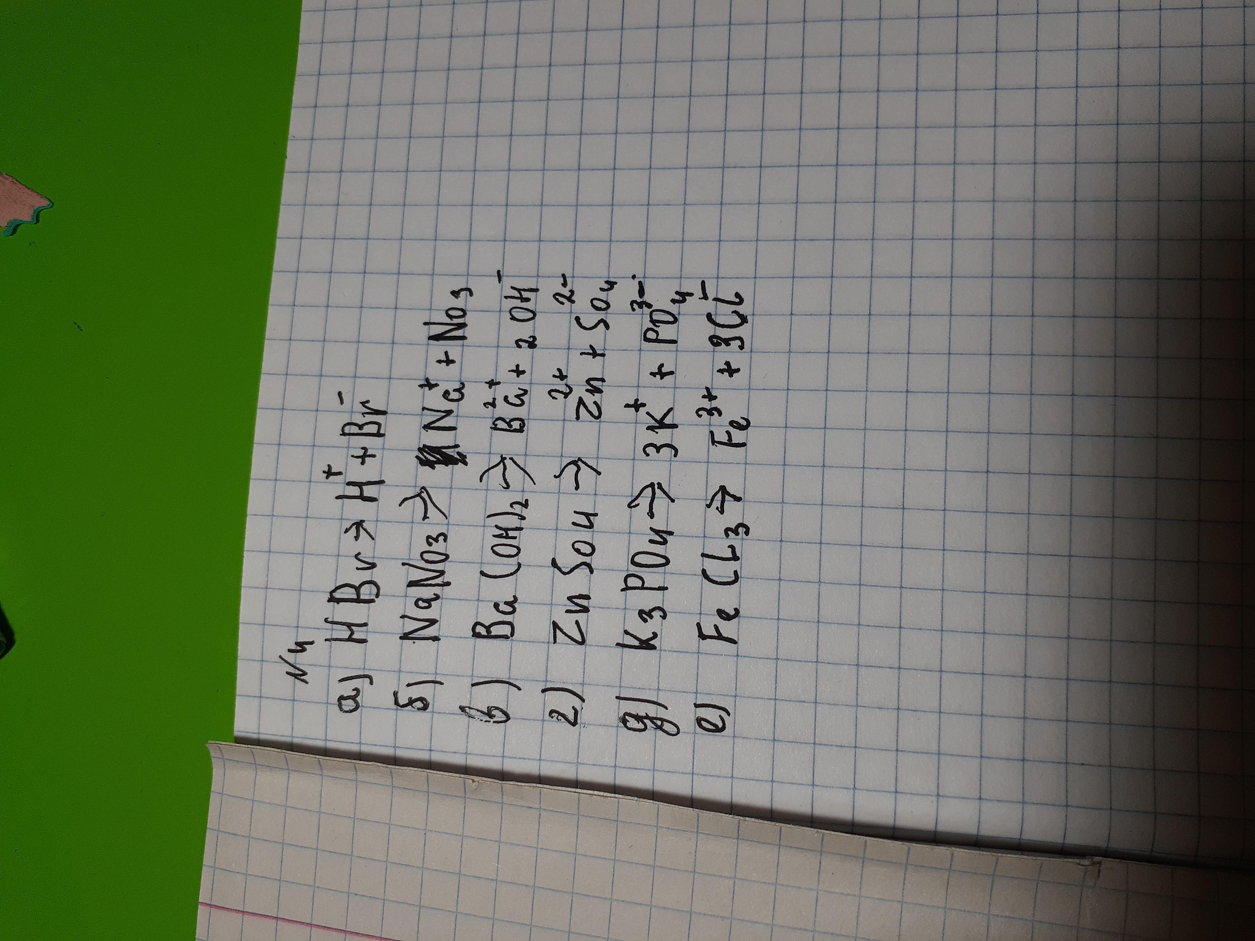 а) HBr; б) NaNO; в) Ba(OH),; г) ZnSO4; д) КРО; е) FeCI-