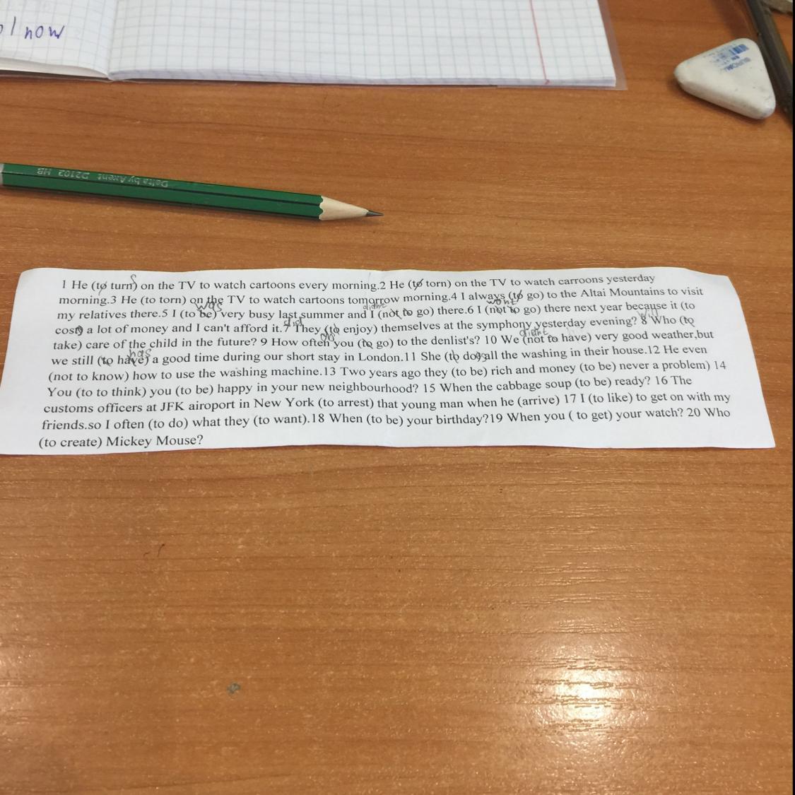 1- turn 2-turn 3- turn 4-to go 5-was 6-didn't 7- enjoy 8- take 9- to go 10- didn't have, has 11- do 12- don't know 13- were, was 14- think, was 15- were 16-to arrest, arrived 17- like, to do, want 18- were 19- to get 20- created