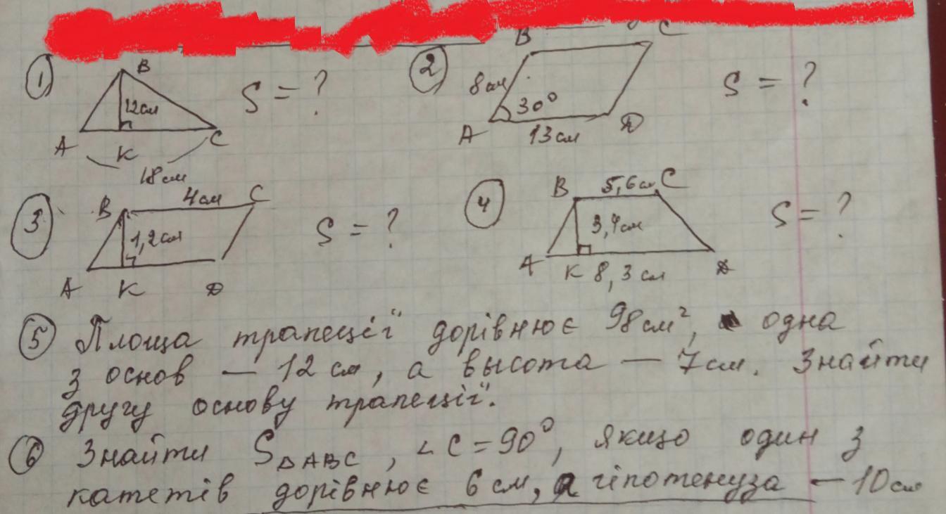 4)S=(5.6+8.3)/2 *3.4=23,63(cм²)
