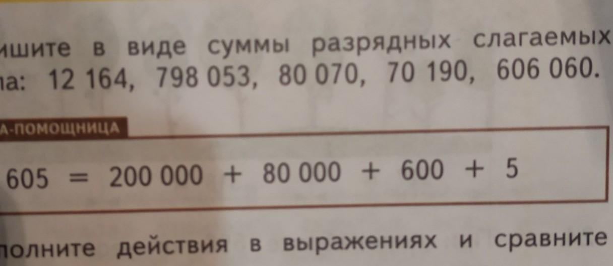 числа: 12 164, 798 053, 80 070, 70 190, 606 060.