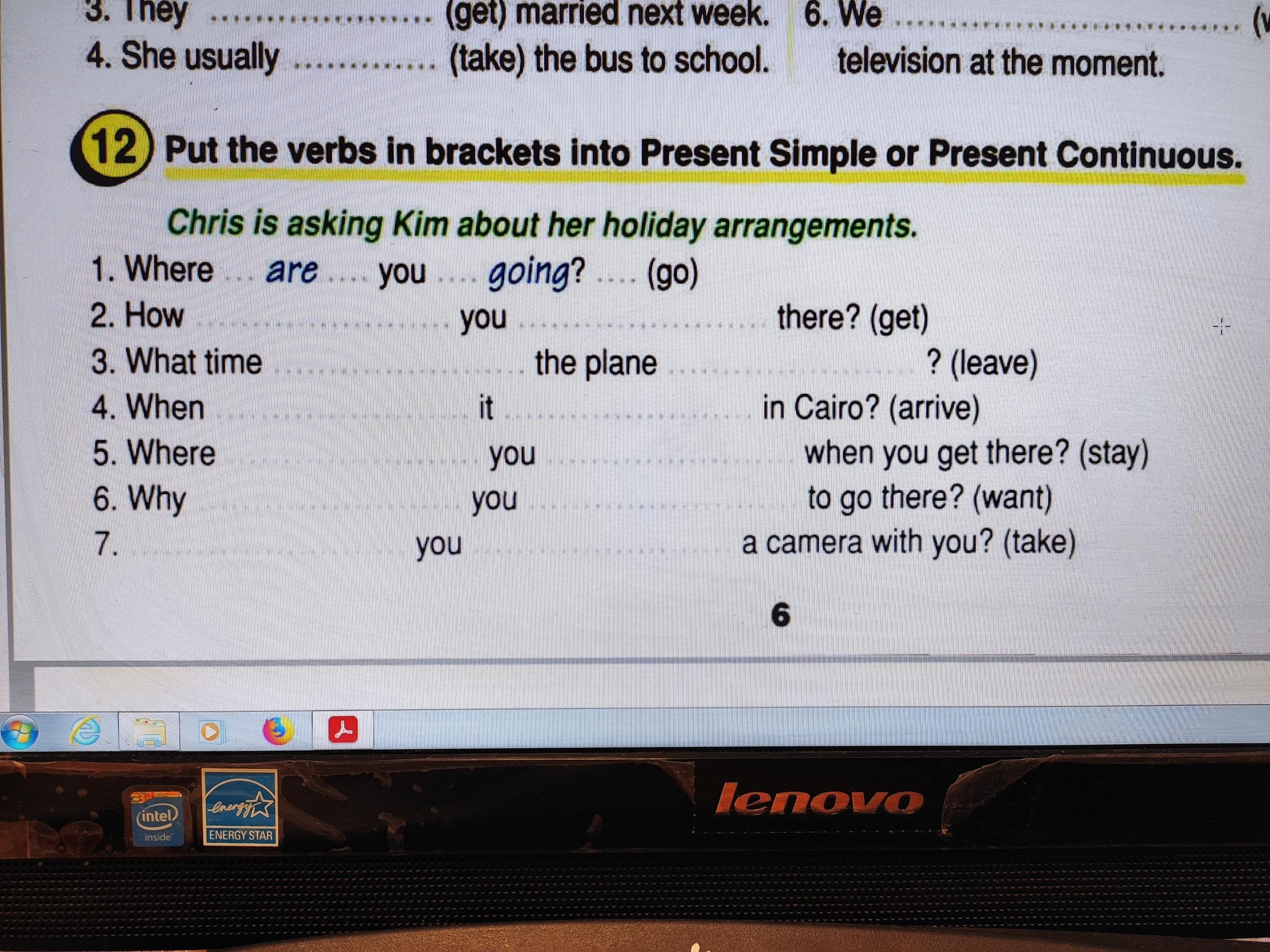 2. How did you get there? 3. What time does the plane leave? 4. What time does it arrive in Cairo. 5. Where are you staying when you get there? 6. Why do you want to go there? 7. Are you taking a camera with you?